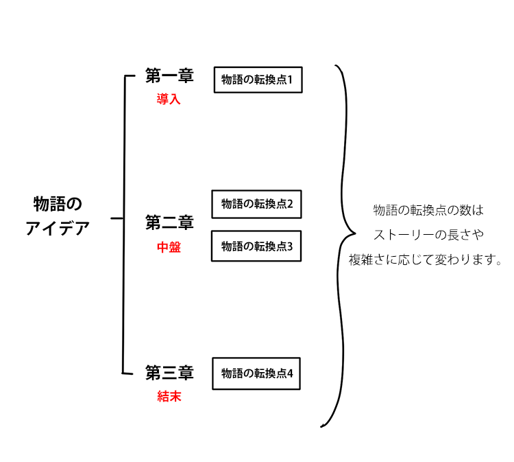 それぞれの章ごとに、起こってほしい主要な物語の転換点を書き出します。