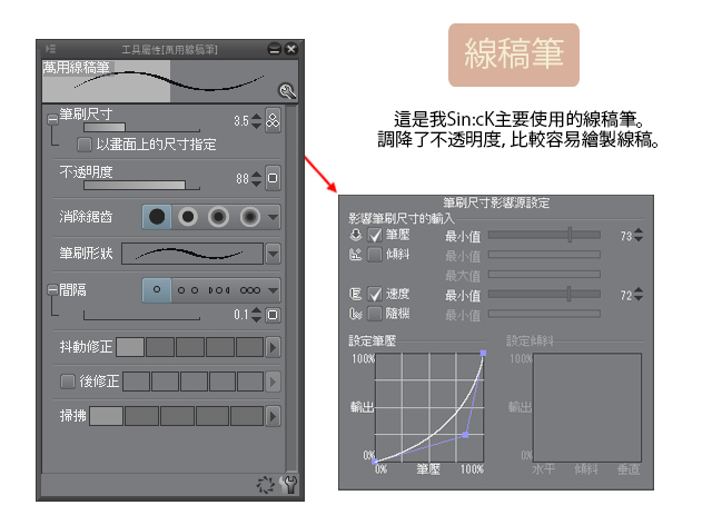 雖然這裡舉例列出了筆刷的設定,但在實際使用後應該也會有人覺得「咦?不太好用耶」吧。