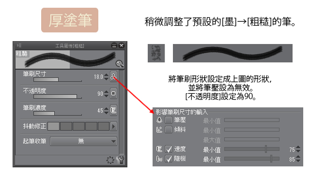 可以試著將各種筆刷的設定作為基礎來進行調整,找出適合自己的設定!
