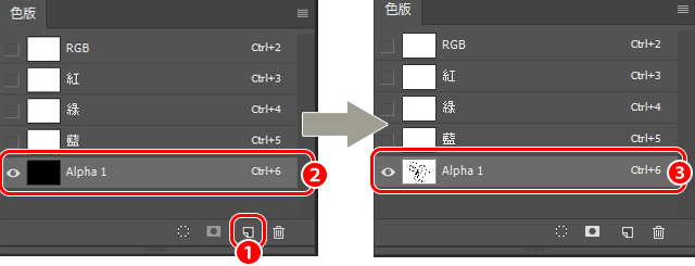 ※在PhotoshopElements上無法使用這邊介紹的Alpha色板功能。