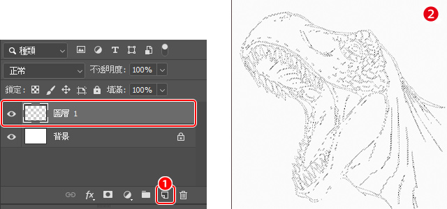 (1)點選[圖層]面板的[建立新圖層],建立新圖層。