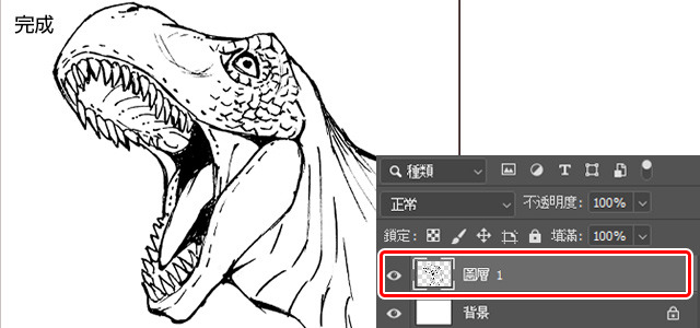 最後選擇[圖層]選單→[影像平面化],合併調整圖層(色調補償圖層)和線稿圖層。