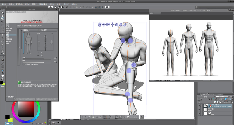 繪圖軟體CLIP STUDIO PAINT配備標準的3D素描人偶功能。