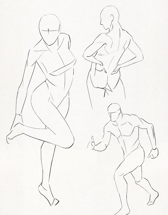 只要反覆練習速寫身體的形狀(姿勢)和比例,就會漸漸變得能畫出協調的圖像。