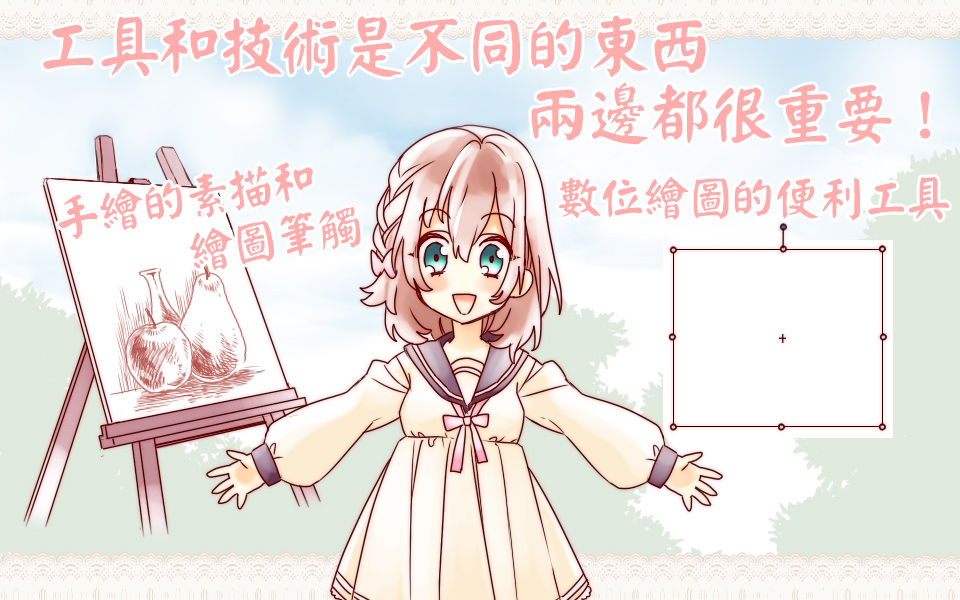 因為電繪和手繪一樣都是畫材的一種,所以沒有所謂「只會用這個所以圖畫得不好」這種事情。