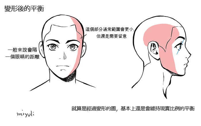 因為經過變形的角色臉孔也是以實際人類的臉部平衡為基礎,所以有時也會直接使用先前圖片上繪製的比例。