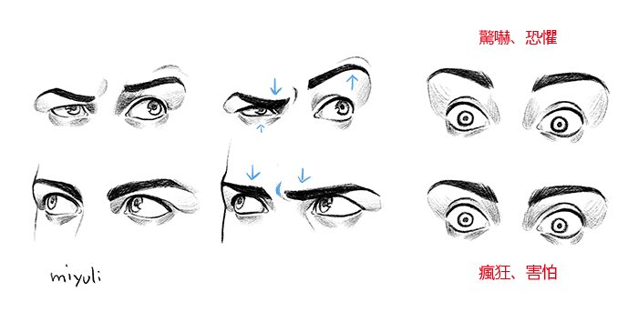 可以把加大眼白面積的做法是使用在角色受到驚嚇或感受到恐怖、危險的時候。