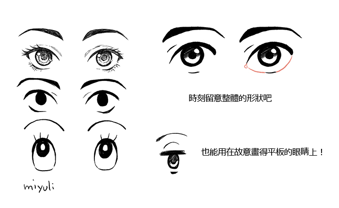 因為容易失去動態而顯得太過單調,所以要盡量避免讓眼睛的形狀對稱。