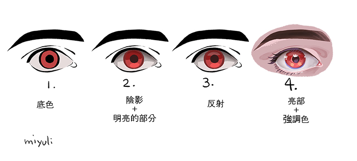 依環境光線和自己想要呈現的風格,眼睛的上色方法會有所不同。