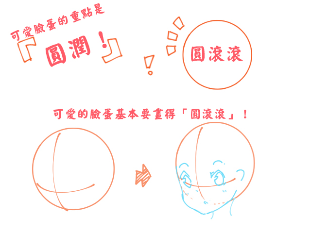所以說,要繪製可愛臉蛋的話,只要留意「圓潤的臉」來畫就可以了!