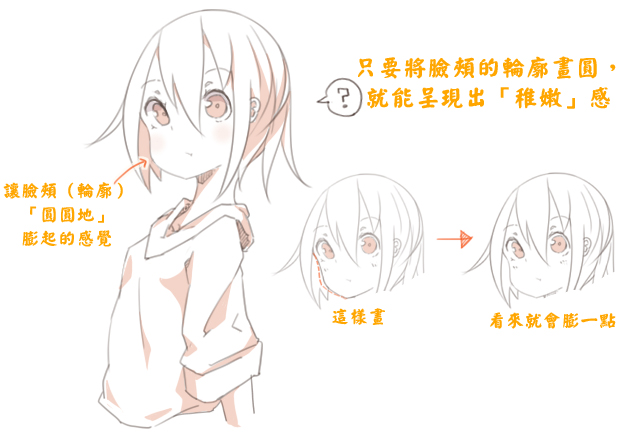 而「稚嫩的臉蛋」通常都是「圓潤的臉蛋」。就是俗稱的「膨膨臉」。