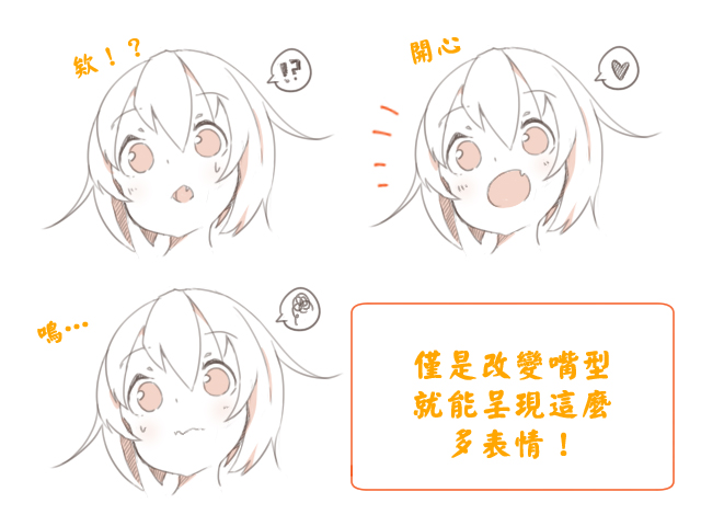 像這樣,「只要改變嘴型就能表達各種狀態」!