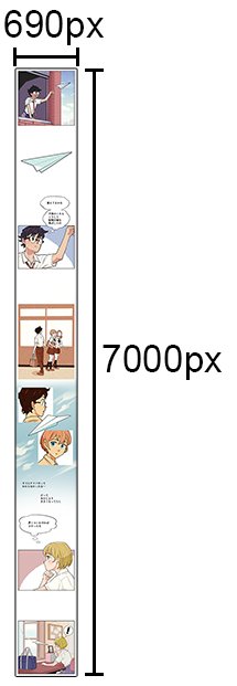 「WEBTOON」會以適合縱向滾動的顯示方式公開,但實際上它並不是一張完整的圖像,而是由多張高度小於1280px的圖像排列而成的。