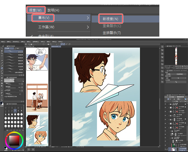 只要使用CLIP STUDIO PAINT的新視窗,進行作業時就可以在複數視窗中顯示圖像,能同時確認原稿的部分和整體。