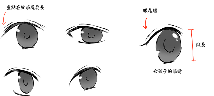 男女的眼睛大小也不一樣,眼睛畫法的差異應該是男性和女性之間最大的不同吧。