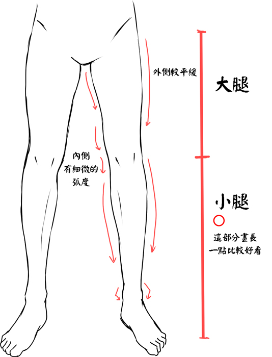 雖然實際人類大腿和小腿的比例接近1:1,但把漫畫角色的小腿畫得長一些,比較容易給人修長帥哥的印象。