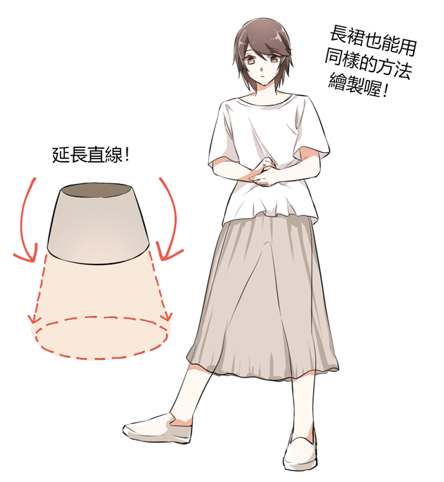 推薦一邊繪製,一邊想像裙子內部空間的形狀。