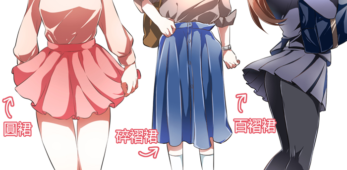 裙摺較寬的裙子是學校制服常見的款式,在插圖裡也很常看到它。