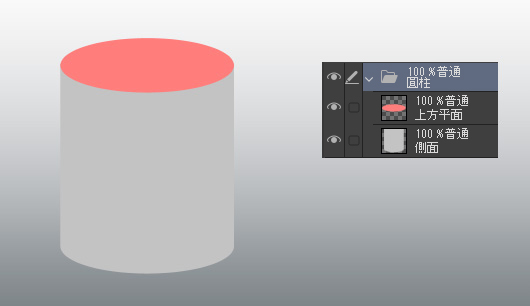 把這邊的平面塗色方法應用到STEP 1的圓柱和戒指上,可以畫出像下面這樣的圖。