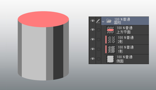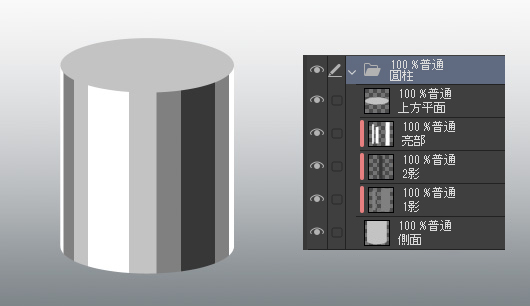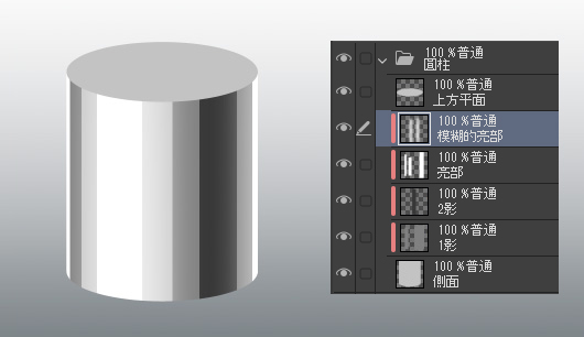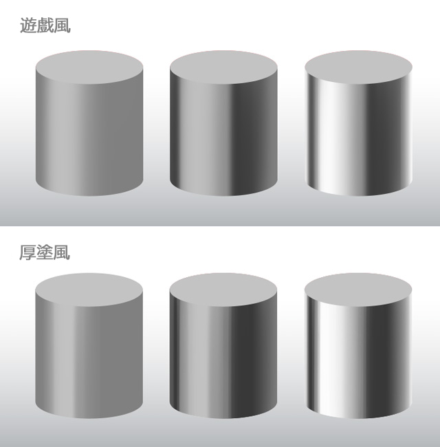 這種圓柱的塗法,除了單純的柱體外,還能應用在繪製各種物體時。