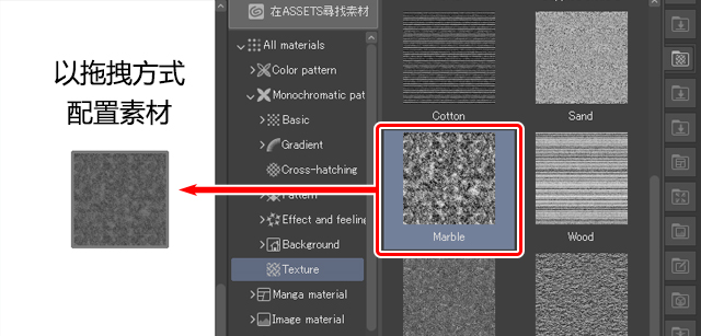 如果材質的圖樣看來太過顯眼,就追加圖層蒙版進行調整。