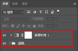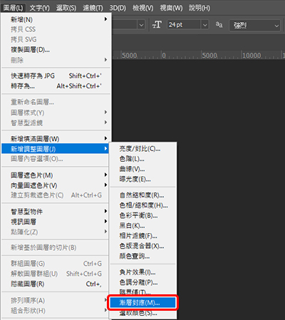 選擇[圖層]選單>[新增調整圖層]>[漸層對應],建立漸層對應圖層。