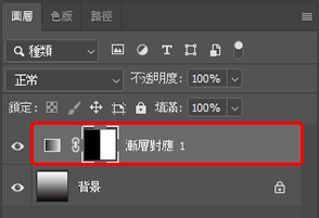 漸層對應上會自動加上圖層蒙版,為了比較效果,這邊先把畫布上的半張蒙版隱藏起來。