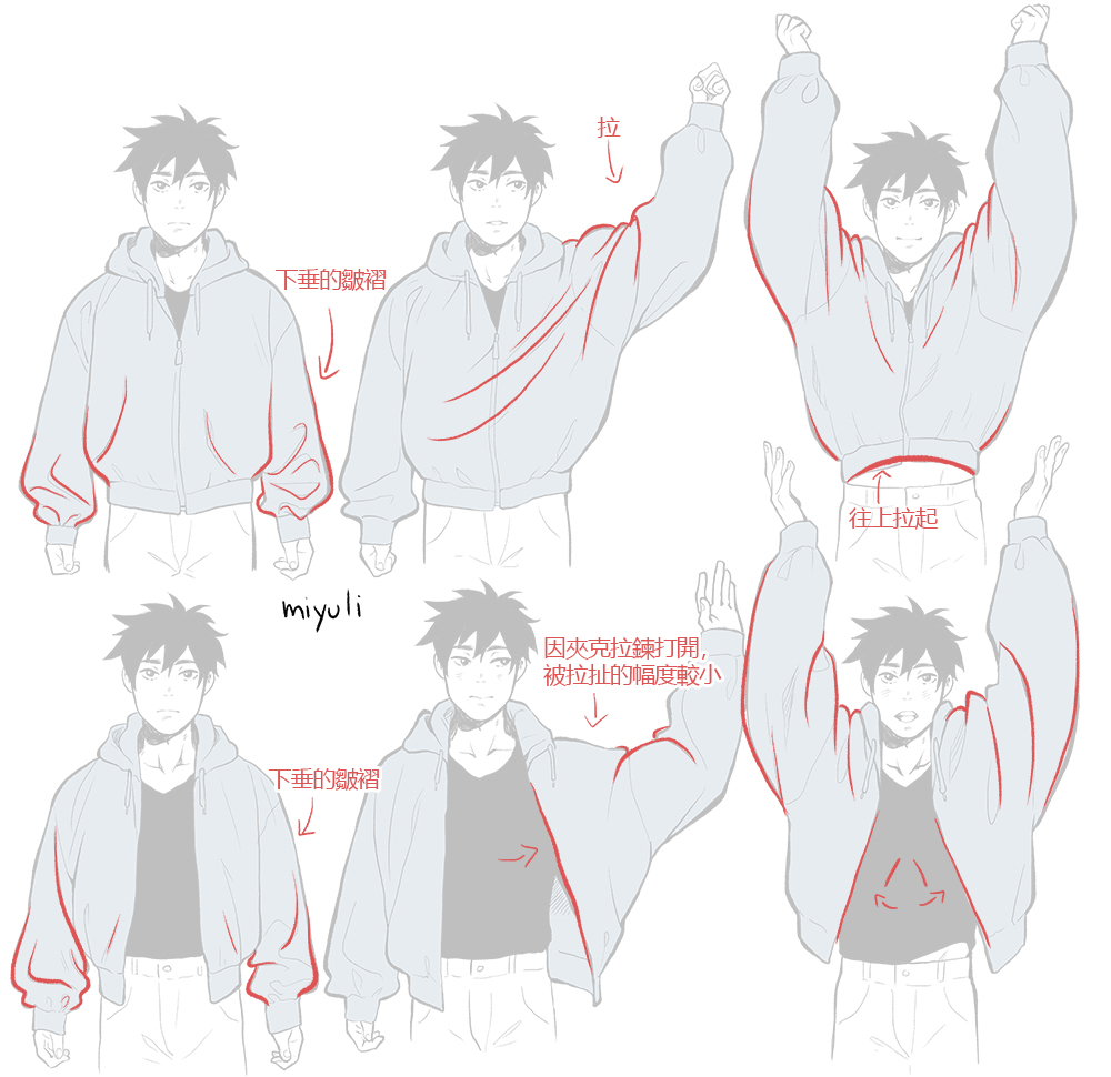 依布料解說衣服皺褶的繪製方法【T恤・帽T・襯衫・西裝】