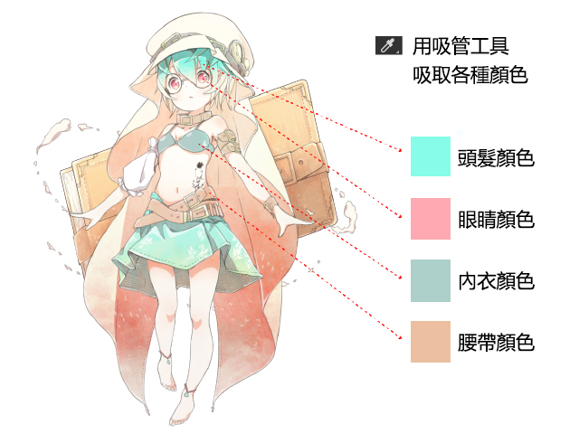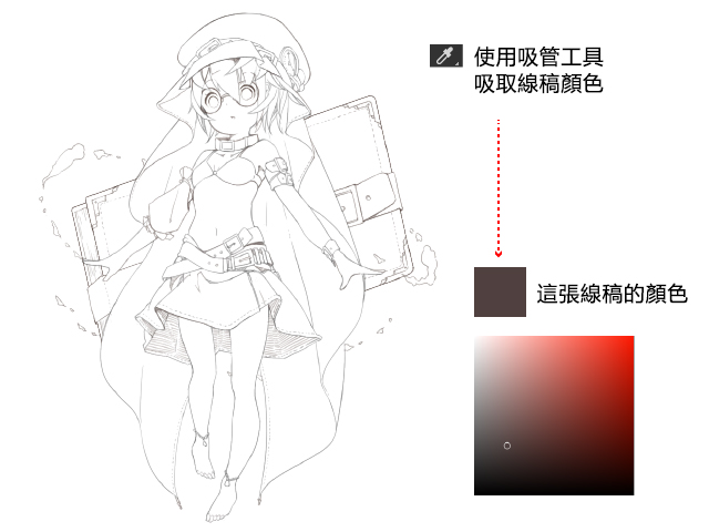 讓我們試著用吸管工具吸取剛剛插圖上的線稿顏色吧。