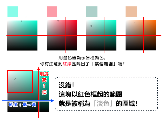 首先,淡色指的是什麼樣的顏色呢? 這邊要使用我準備的插圖來進行說明。