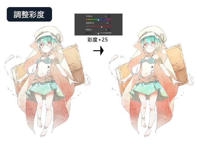 在無法大幅度變更明度的淡色塗法中,好好活用彩度是非常重要的事情。