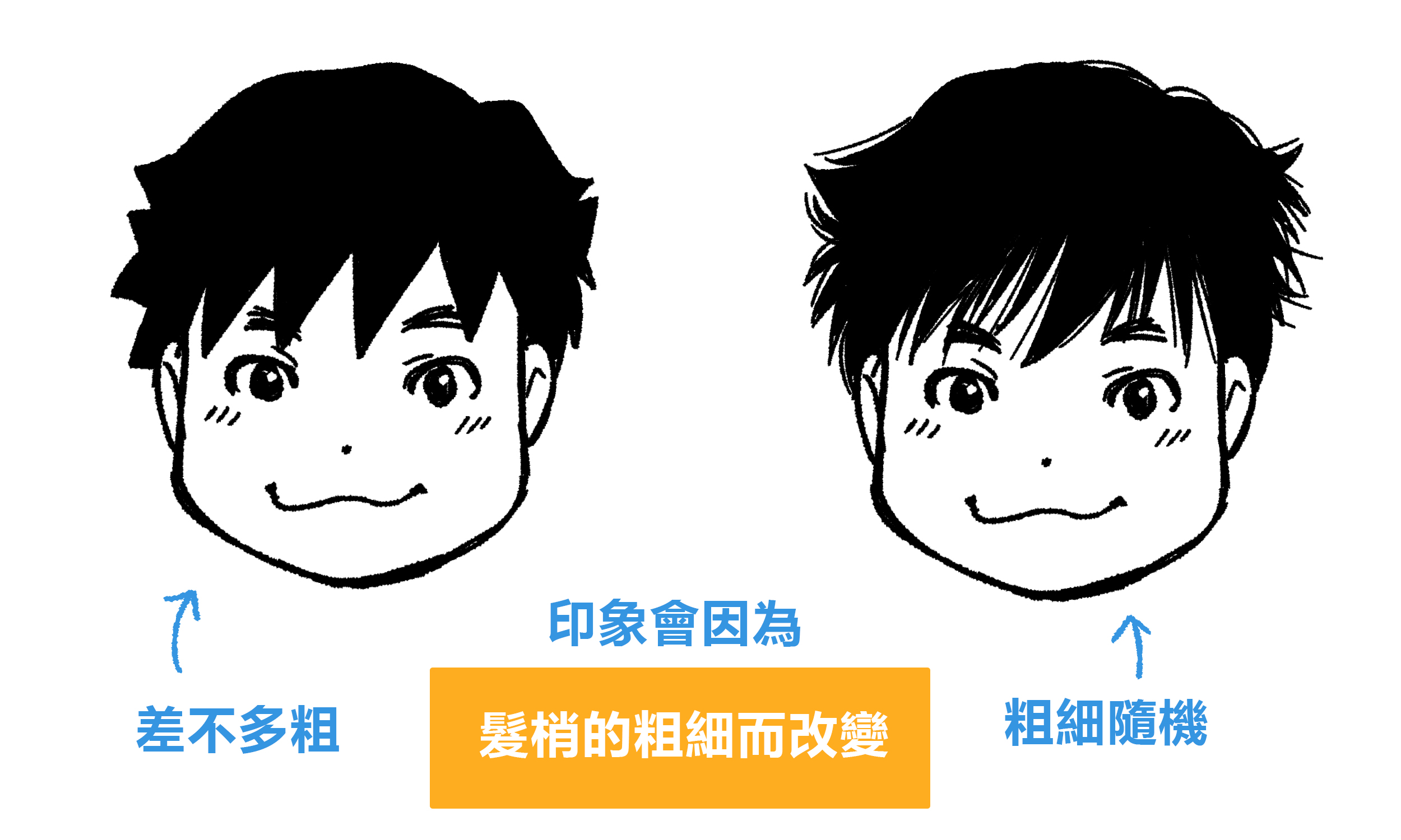 幫頭髮描線的時候,為了抑制線條的抖動,繪製線條時要帶點氣勢。