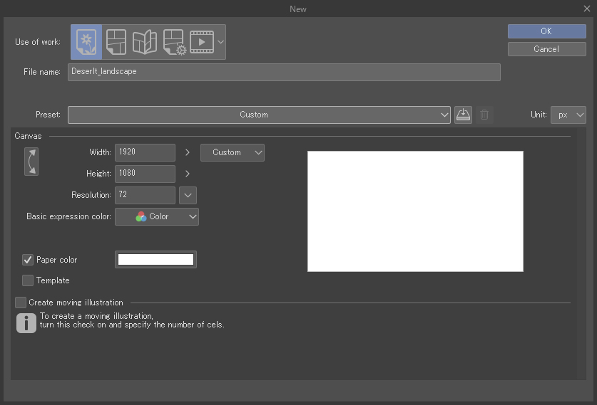 在這個講座中,我選擇使用Full HD格式(1920×1080)的尺寸,將解析度設定為72dpi。