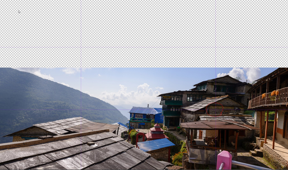 為了呈現出讓人印象深刻的場景,我遵循三分法,把村莊安排在右側柵格的交點上。