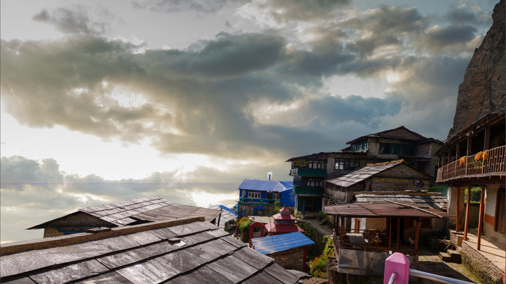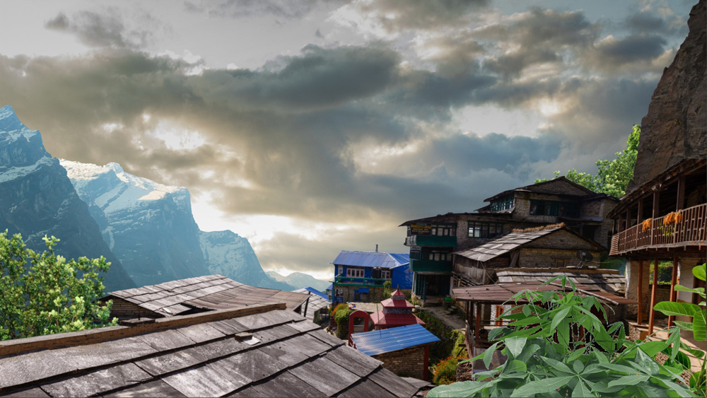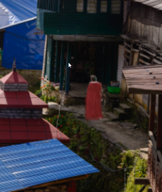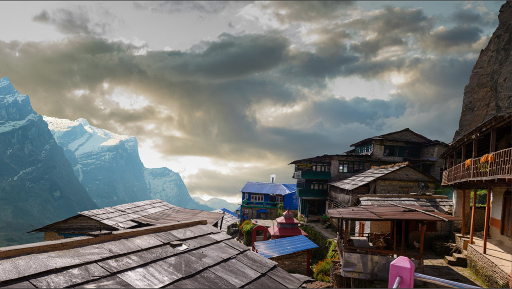 在村莊的背景處加上一些樹,能幫照片營造更明確的景深。
