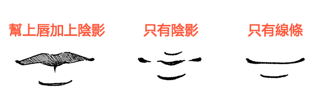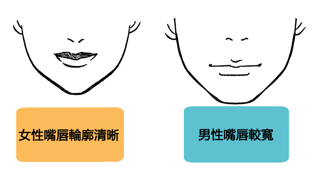 清楚地畫出脣形就能畫出較女性化的嘴部,若想要帶出偏男性的感覺,就把嘴唇寬度畫得寬一點吧!