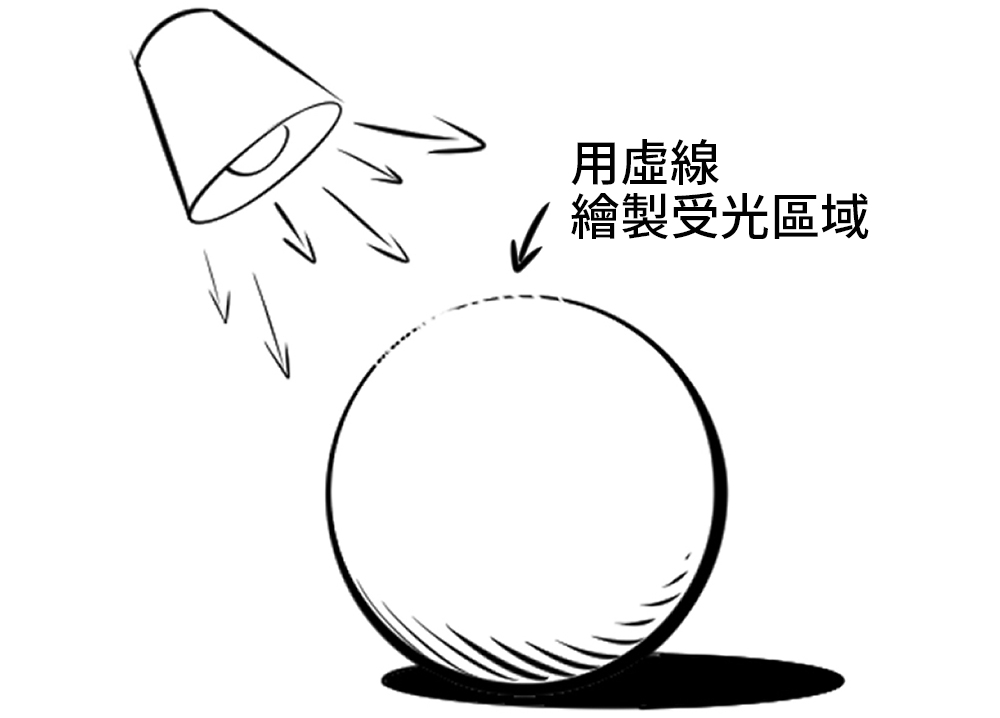 各位可以用虛線繪製輪廓,藉此呈現照射在物品或人物上的亮光。