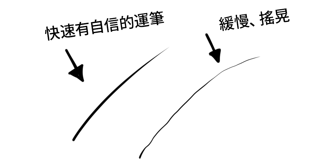 下筆時要保持快速、自信,這樣就能畫出更平滑更乾淨的線條。很多人在慢慢畫線的時候,手都會發生輕微的抖動或晃動,我們必須避免繪製這種不穩定的線條!