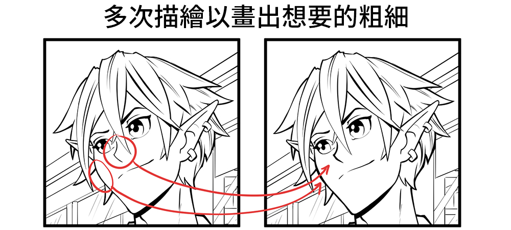 不要排斥用重複描線的方式來營造出想要的效果,不是所有線條都必須一氣呵成。