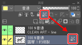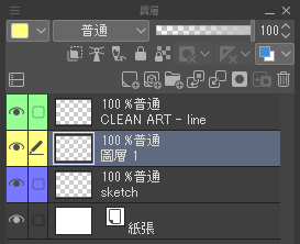 重點:把新建立的圖層拖曳到先前建立的兩個圖層之間(草稿和線稿),使線稿的圖層位於最上層。