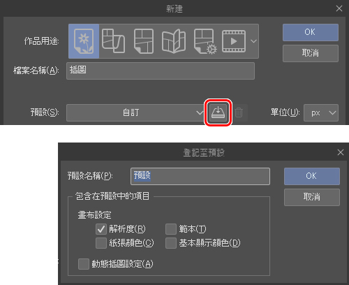 另外,可以把設定登記至預設以便下次使用。