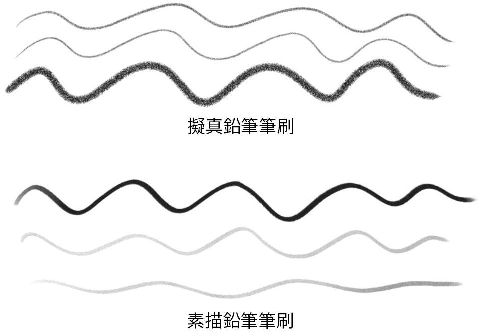 繪製草稿時我喜歡使用帶有手繪質感的筆刷作畫材,如擬真鉛筆或素描鉛筆。我喜歡它呈現出如實際作畫於紙上的效果。