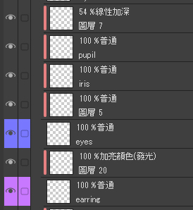 當繪製了各別元件(頭髮、衣服、皮膚等)後,我會複製每個圖層,並將副本設定為色彩增值或其他的混合模式,使顏色更加飽和。