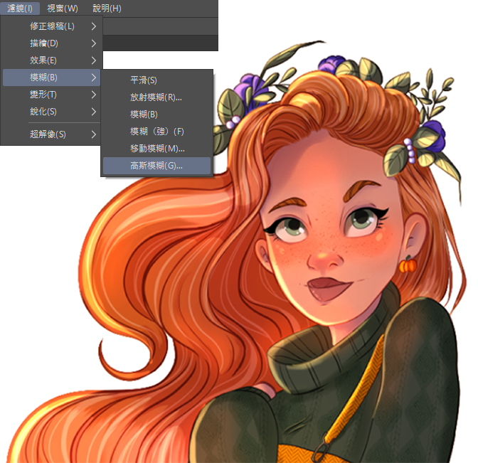 在[濾鏡]選單中點擊[模糊]→[高斯模糊]。