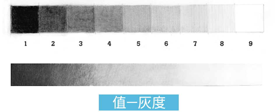 最右邊色調最明亮,反之最左邊的色調則最黑暗。照明是很深奧的一門學問,複雜到甚至還有專門研究照明的藝術家。