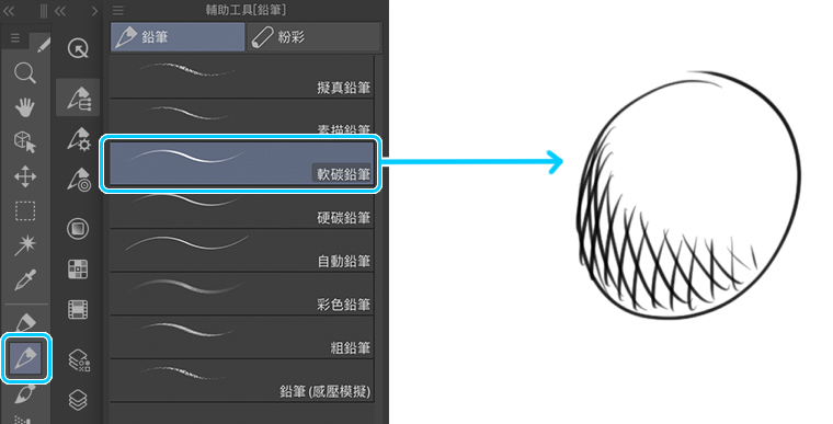工具位置:[鉛筆]工具>鉛筆>軟碳鉛筆