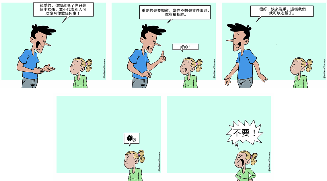 「親愛的,你知道嗎?你只是個小女孩,並不代表別人可以命令你做任何事!」