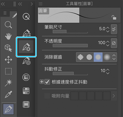 如果有需要,還可以變更筆刷的設定以配合自己的風格和繪畫方式,你可以在工具屬性面板中調整筆刷設定。