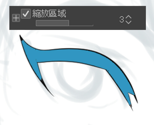 有時填充工具會在邊緣留下些許空白,不是很好看。想要解決這個問題,可以變更[縮放區域]的數值,避免設定為0,確保填充時可以填滿整個線條,而不會出現空白像素。