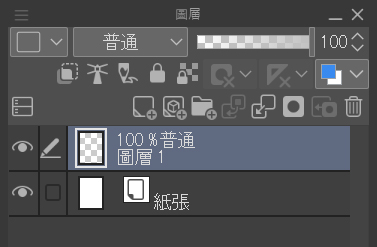 開啟空白畫布後,請開啟圖層面板,並用滑鼠游標點擊背景圖層(紙張)上方的透明圖層。這是CSP預設的圖層,不需要另外建立。